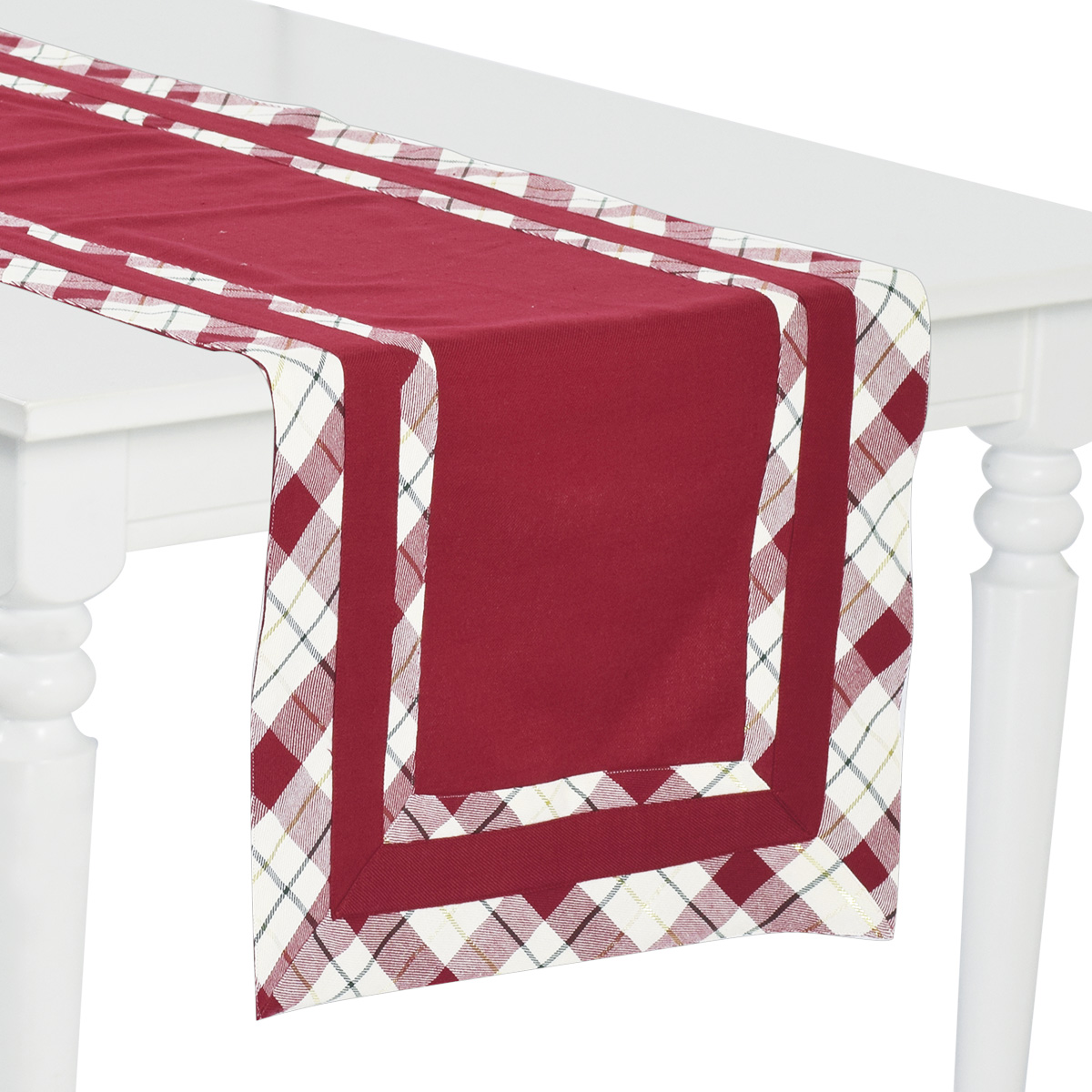 Runner tinta unita rossa o panna con doppio bordo applicato a quadri e filo lurex oro ,lavorato a mano e 100% in cotone. Impreziosisci il tuo ambiente natalizio con la Christmas collection della linea Preziosa Luxury.